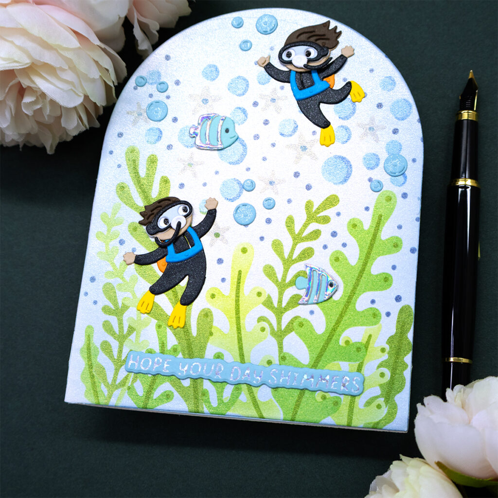 - Die cut the pieces to create your scene with metal plates included in the Spellbinders “Splash Tales” die set.