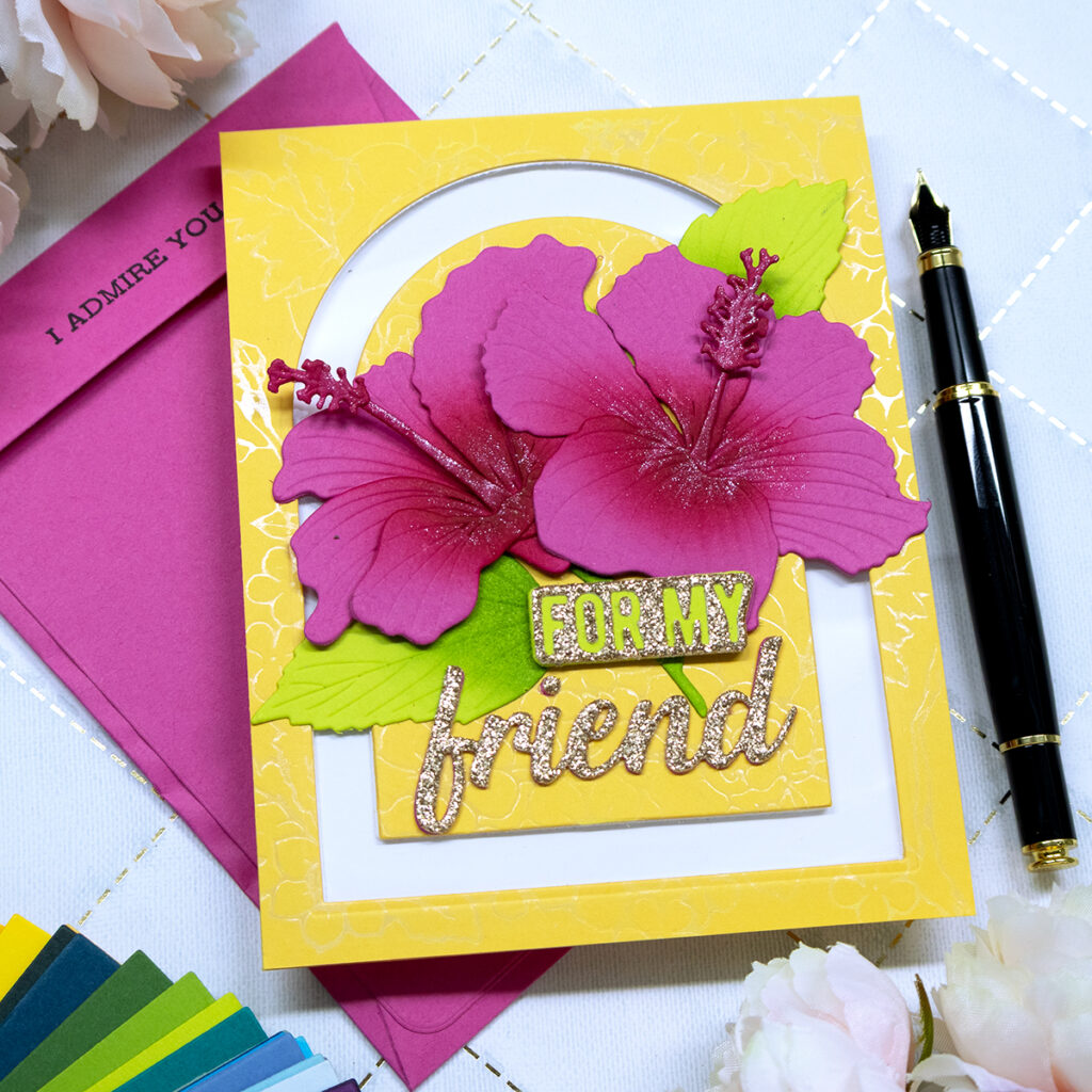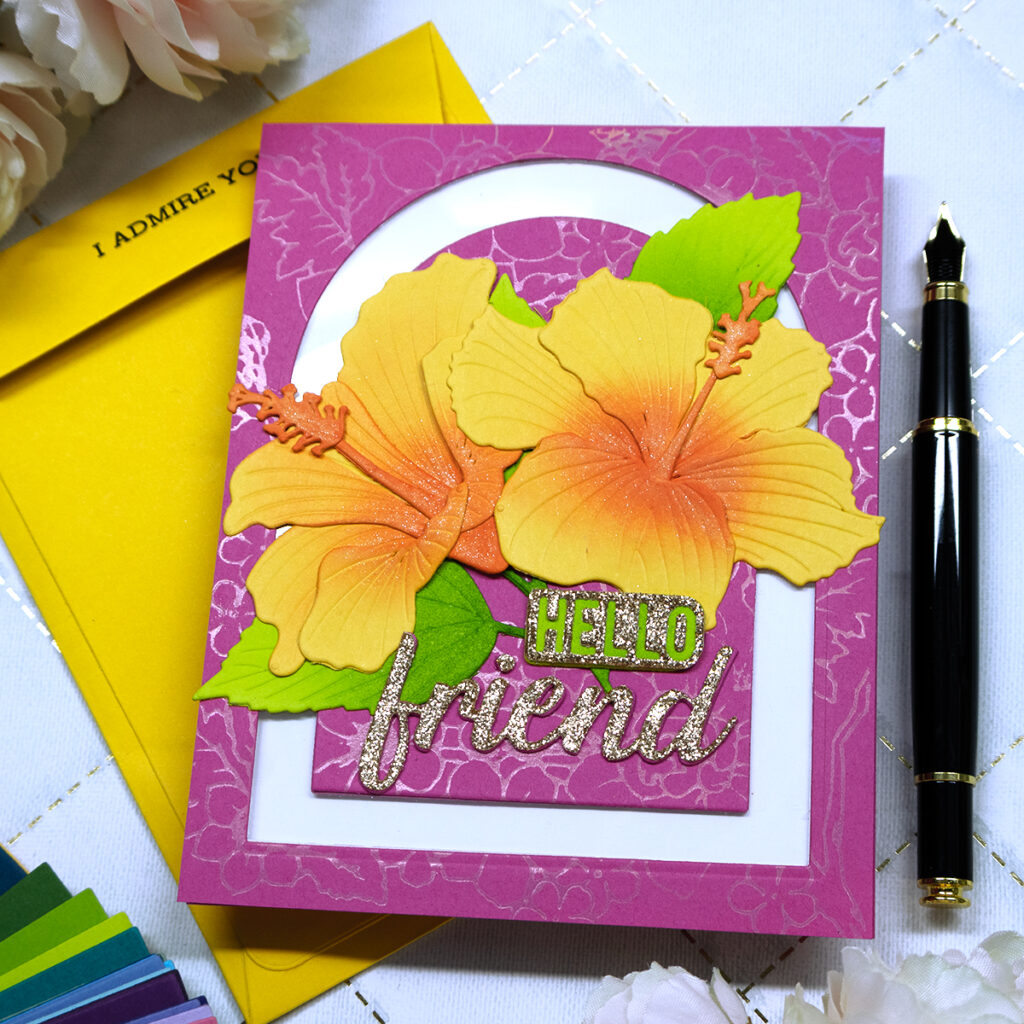 Hello crafters! Today I am sharing two note cards featuring Altenew’s Hibiscus layering die set! I love the end result and you can click here to watch a step by step instruction! At the end of this post you can find a complete supply list of all products used to make today’s note cards!