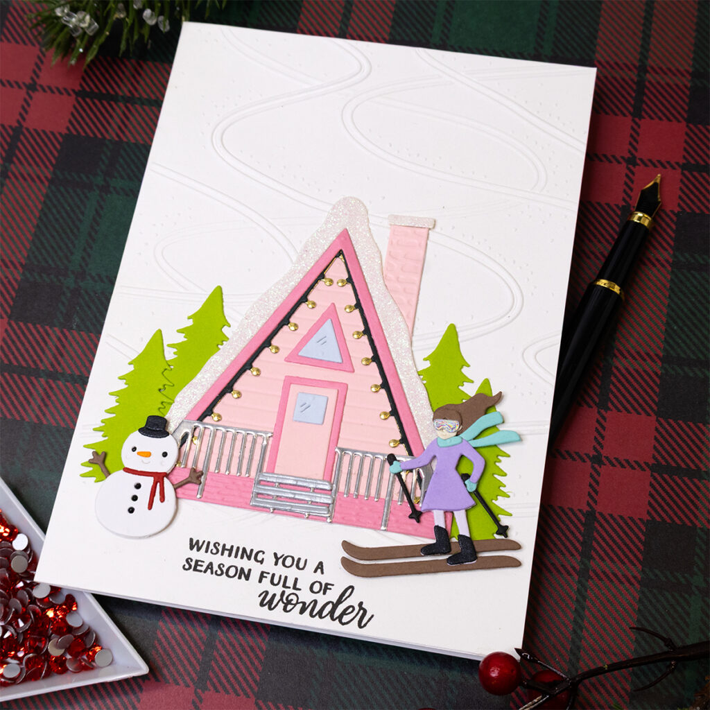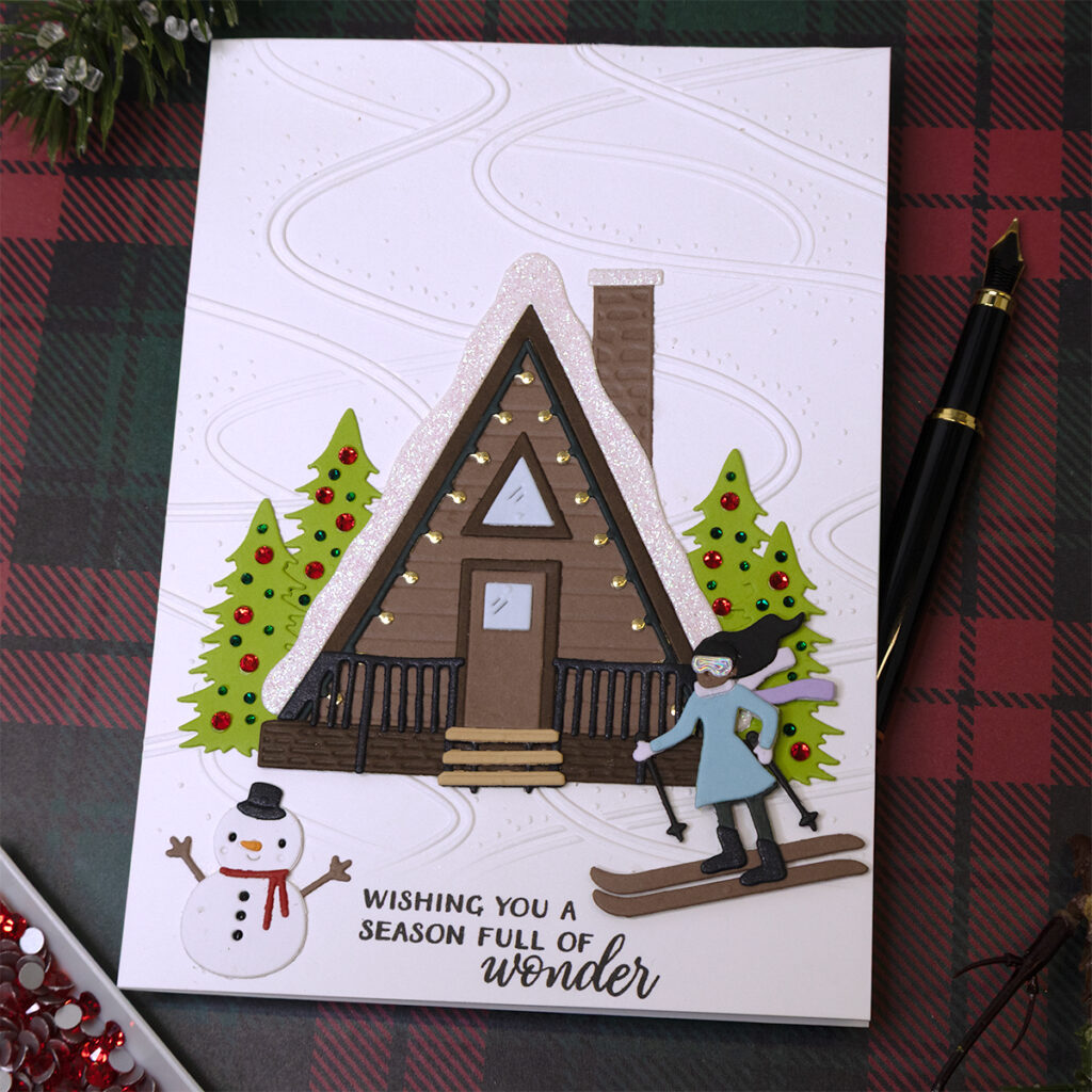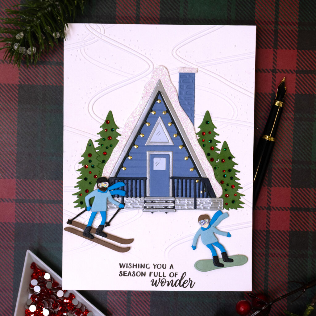 Hello crafters! Today’s note cards are all about the Ski-son’s Greetings Collection by Simon Hurley with Spellbinders! I had a lot of fun creating with the products from this collection and I hope this post inspired you to get creative as well!